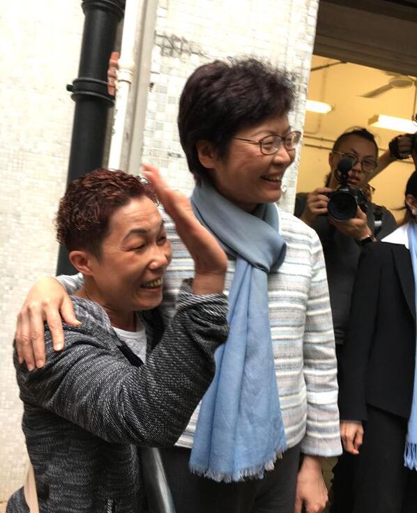林鄭月娥與市民合影拍照,好有親和力。記者 葉佩瑜攝