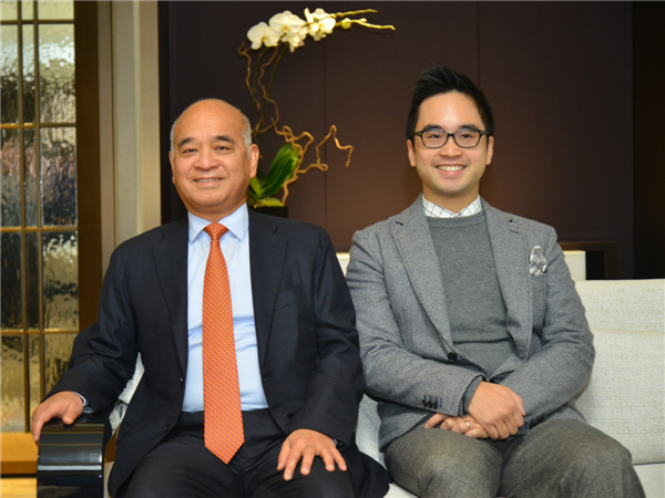 李兆基(中)與長子李家傑、次子李家誠(右)。