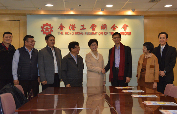 工聯會讚林鄭有往績、有能力,亦獲市民支持,能帶領香港向前邁進,圖為林鄭早前與工聯會會談。