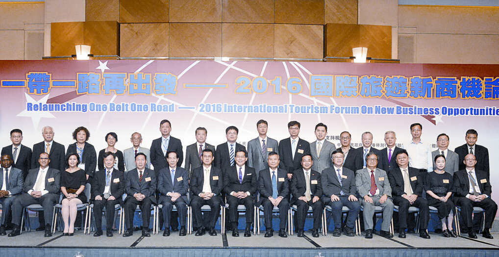 「『一帶一路』再出發——2016國際旅遊新商機論壇」主禮嘉賓和協辦機構代表合照。
