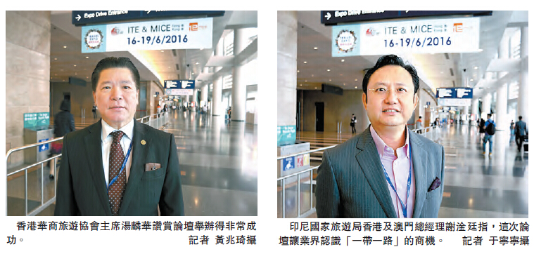 【香港商報網訊】記者黃兆琦報道:香港華商旅游協會主席湯麟華和印尼國家旅游局香港及澳門總經理謝淦廷對香港商報等主辦「一帶一路再出發──2016國際旅游新商機論壇」予以高度贊揚,認為有助業界和市民更加了解「一帶一路」所帶來的重要機遇,更希望日后繼續舉辦同類型的論壇,對各方都有好處。