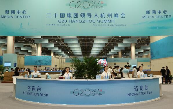 9月1日,G20杭州峰會新聞中心正式啟用,可為來自海內外4700余名的媒體記者提供服務。圖為新聞中心大廳。中新社發 王剛 攝
