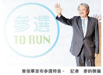 【香港商報网訊】記者何加祺報道:特首選戰再添一人。前財政司司長曾俊華昨日舉行記者會,宣布參選下屆行政長官選舉,他說,中國從來就是港人身份認同的核心,香港可以更好,是因為「一國兩制」偉大構思。今天香港最急切要建立信任、團結社會、重燃希望,這也是他參選的理念,並深信守護香港法治、公平、廉潔、自由、民主等核心價值,是特區政府當仁不讓的重任。