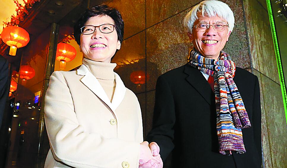 林鄭月娥昨傍晚在社聯行政總裁蔡海偉陪同下,與大約20名社福界選委會面,歷時約個半小時。出席者包括:楊森、羅健熙、黃於唱、陳琬琛、莊陳有及賴仁彪等。林鄭在會後表示,交流坦承深入,就扶貧、安老及傷殘等廣泛議題有實在的討論,她亦分享了對公共理財的施政理念。