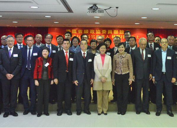 林鄭月娥(前排右四)昨與港區省級政協委員聯誼會成員會面後合照。 記者 蔡啟文攝