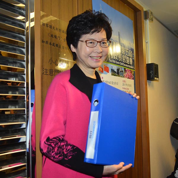 前日,大熱門之一的林鄭月娥已提交579份選委提名,惟其中7人因名字難以辨認和填錯身份證號碼而被裁定提名無效,包括漁農界梁觀好、郭誌有、鄧煖勳,宗教界楊汝萬及沙意,飲食界邱金榮及新界區議會趙秀嫻。昨天下午,林鄭補交上述7份提名,並提交多1份由民建聯立法會議員柯創盛簽署的新提名,令獲確認選委提名增至580個。