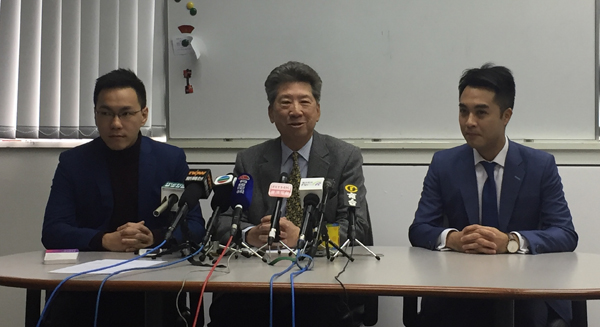 湯家驊(中)批評曾俊華不出席候選論壇。 記者 馮煒強 攝。